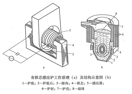1、有芯感應(yīng)爐的結(jié)構(gòu)及工作原理
